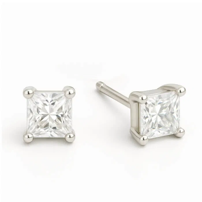Lab Created Diamond Princess Cut Earring Studs