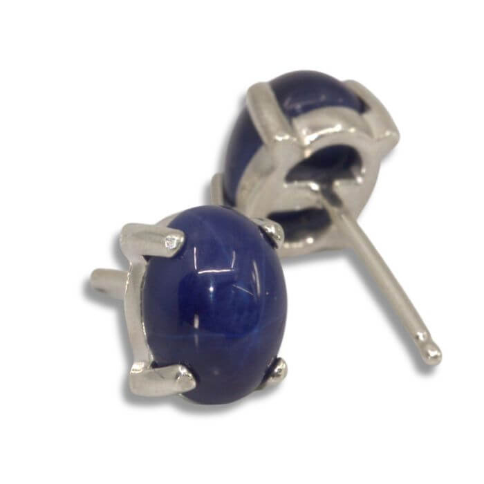 8x6mm Oval Cabochons in your choice of Lab Created Blue Star Sapphire or Lab Created Star Ruby (more pink in color). These simple earrings are made with the post centered to the gemstone which helps with the earring lay in the middle of your ear lobe vs. drooping like a top post earring can cause.