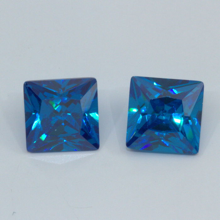 Swiss Blue Cubic Zirconia 8mm Princess Cut 2 Pack Clearance